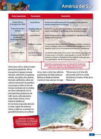 ciones y una cultura muy desarrollada Bolivia y Perú.