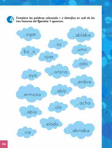 4 Completa las palabras colocando h e identifica en cuál de las tres historias del Ejercicio 1 aparecen. 154