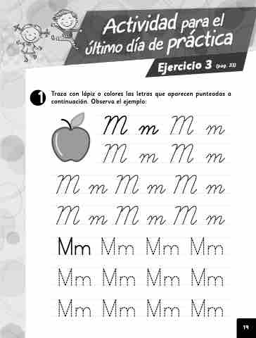 Ejercicio 3 (pag. 33) 1 Traza con lápiz o colores las letras que aparecen punteadas a continuación. Observa el ejemplo: M m M m M m M m M m M m M m M m M m M m Mm Mm Mm Mm Mm Mm Mm Mm Mm Mm Mm Mm 19