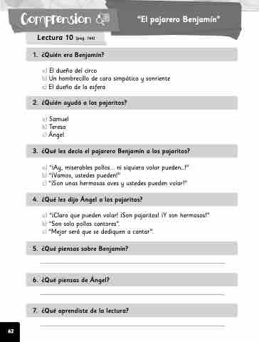 3. ¿Qué les decía el pajarero Benjamín a los pajaritos?