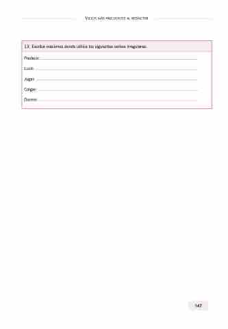 Vicios más frecuentes al redactar 13. Escriba oraciones donde utilice los siguientes verbos irregulares: Predecir: Lucir: Jugar: Colgar: Dormir: 147