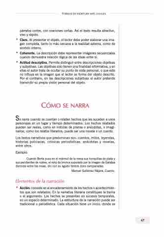 narios, como los relatos literarios; puede ser una novela o un cuento.