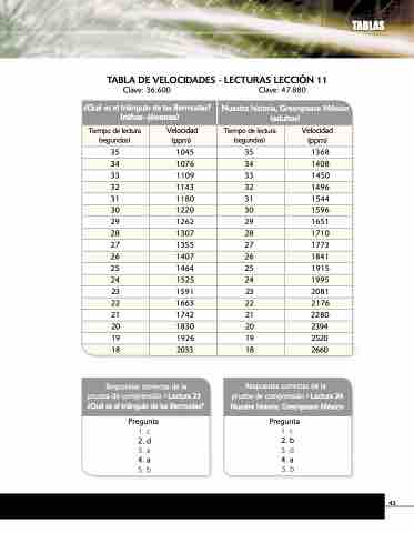 TABLA DE VELOCIDADES - LECTURAS LECCIÓN 11